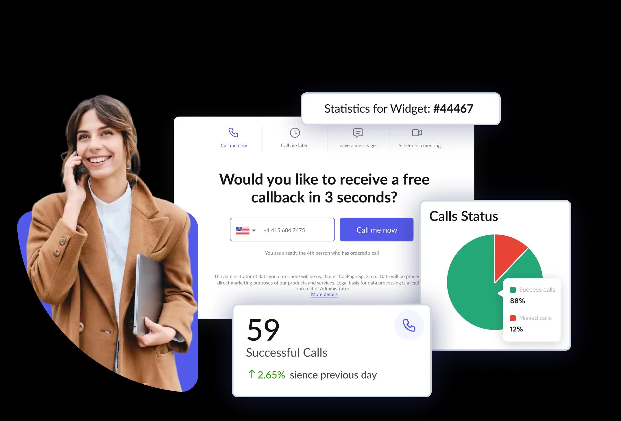 It’s as easy as 1, 2, 3! Setup your free trial, install the widget on your site, and see more leads captured with CallPage.