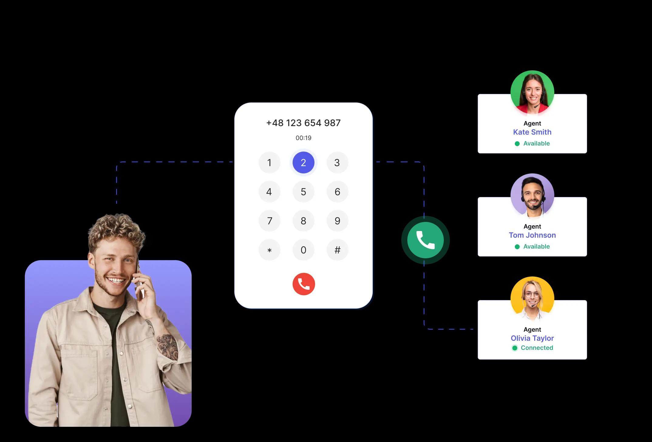 With CallPage, you can invite website visitors to request an instant call with your team. Once they enter their phone number, the system automatically connects them with an available sales rep.