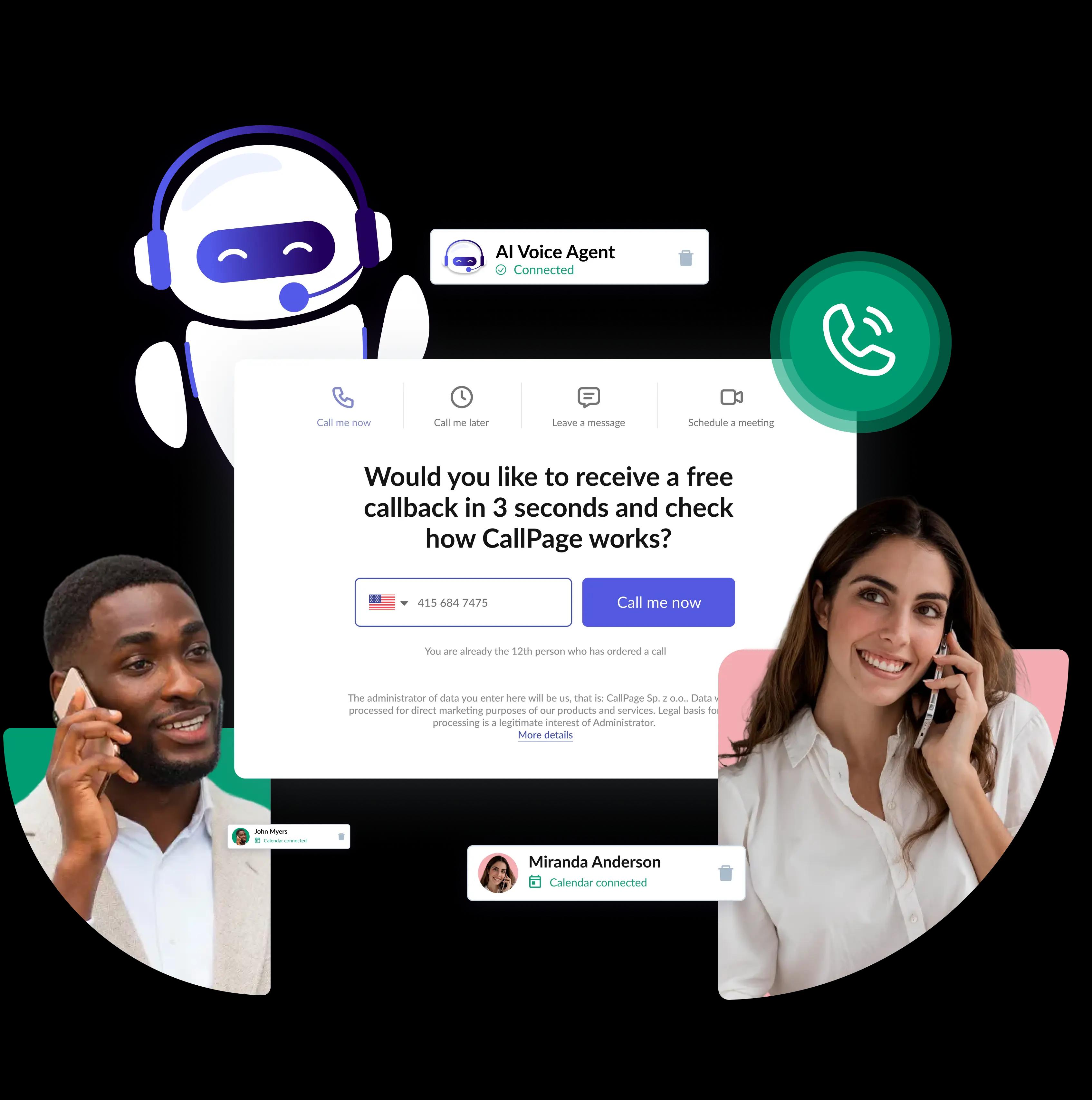 Yes. CallPage works not only with the website widget, but also with website forms, advertising forms (such as lead ads), and call-to-action buttons like “Call now.” When connected to your forms, CallPage automatically triggers a callback as soon as someone submits their phone number, just like when they request a call through the widget. This lets you reach high-intent leads within seconds, while their interest is still at its peak.