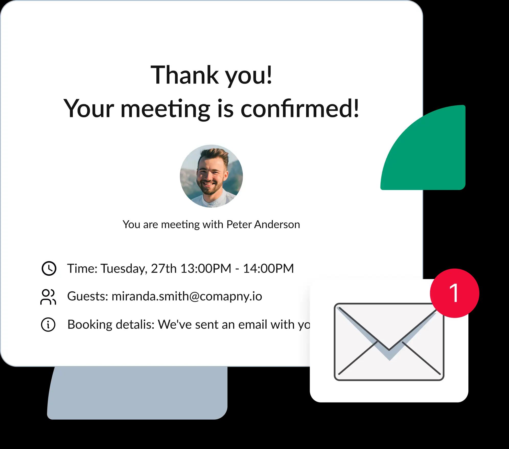 After users fill in the form, CallPage checks the availability of your team in the connected calendar (like Google Calendar) and instantly presents the free time spots for users. After specifying their ideal date and time, everyone receives an automatic email follow-up with meeting details.