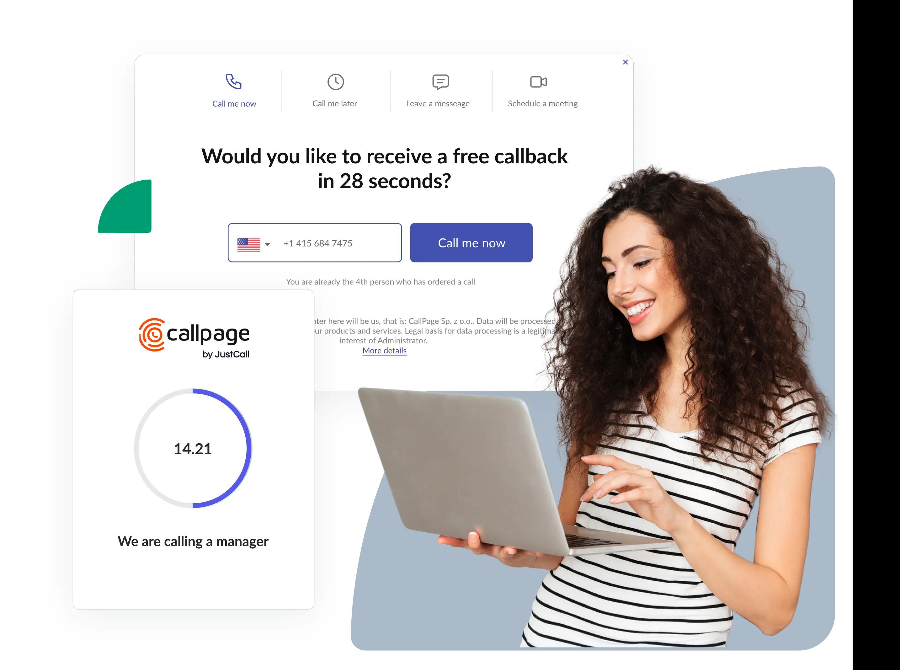 Instantly connect with potential customers, address their inquiries, and guide them through the sales process. CallPage helps you significantly improve your chances of closing deals and increasing revenue. Try CallPage for callbacks and meeting scheduling.